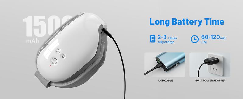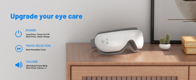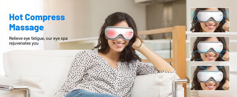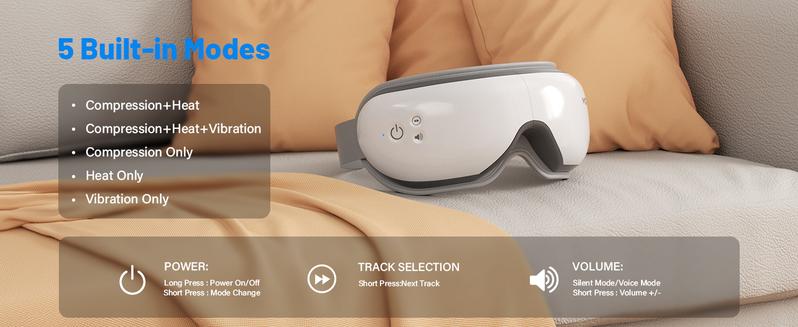 NOTE:This product is not suitable for individuals who have undergone eye operations, have retina conditions, cataracts, glaucoma, etc. This Massager is with 5 modes, such as Heat Therapy, Vibration Massage, Air Compression Massage, Multiple Modes, Bluetooth Connectivity.